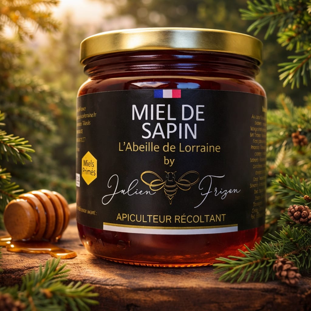Découvrez le miel de sapin artisanal liquide, un miellat exceptionnel et rare, récolté par Julien Frizon dans le massif forestier des Vosges du Nord. Sombre et aromatique, ce miel de caractère révèle toute la richesse de la montagne, du sapin et de son environnement naturel. Sa texture fluide et soyeuse le rend parfait pour les tartines, desserts gourmands, boissons chaudes ou recettes raffinées. Maintes fois primé et médaillé d’or régional et national, il est reconnu comme l’un des meilleurs miels de sapin de France.